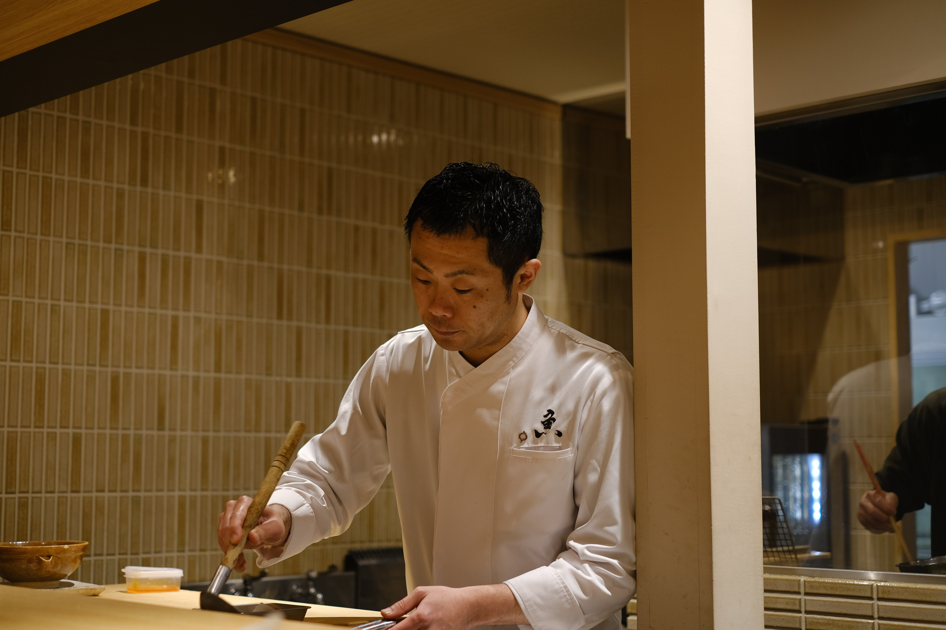 調理師専門学校を卒業後、京都「菊乃井本店」で5年間、新潟市「日本料理 蘭」で2年間の修行を経て、2012年家業の魚行へ